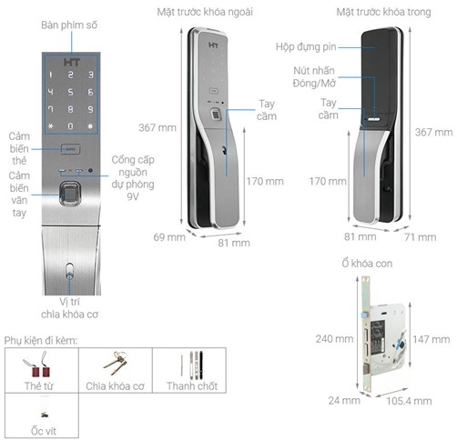• Mở khoá: Vân tay, mã số, thẻ từ, chìa cơ