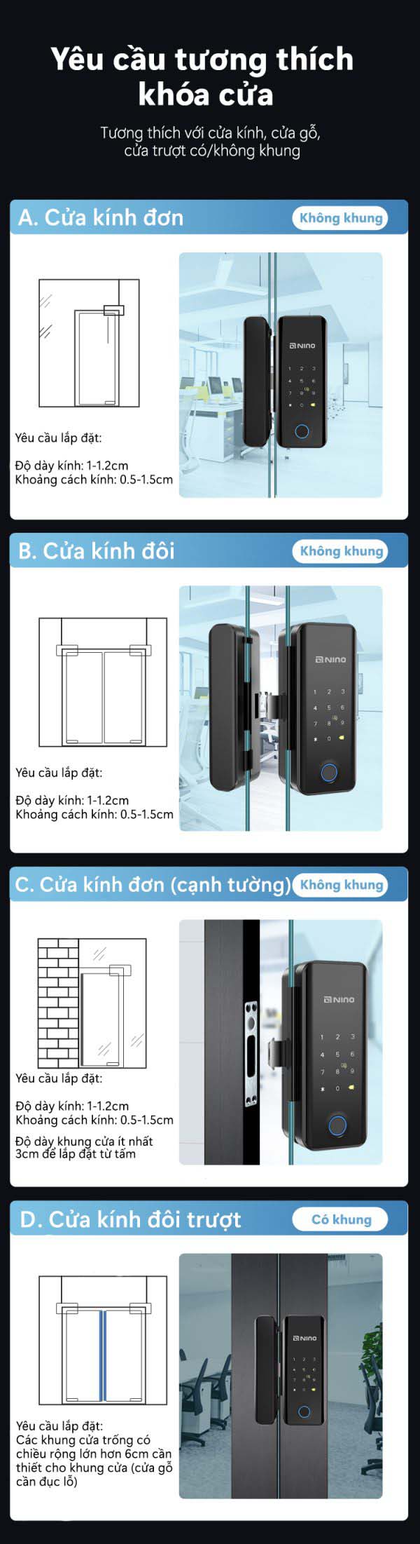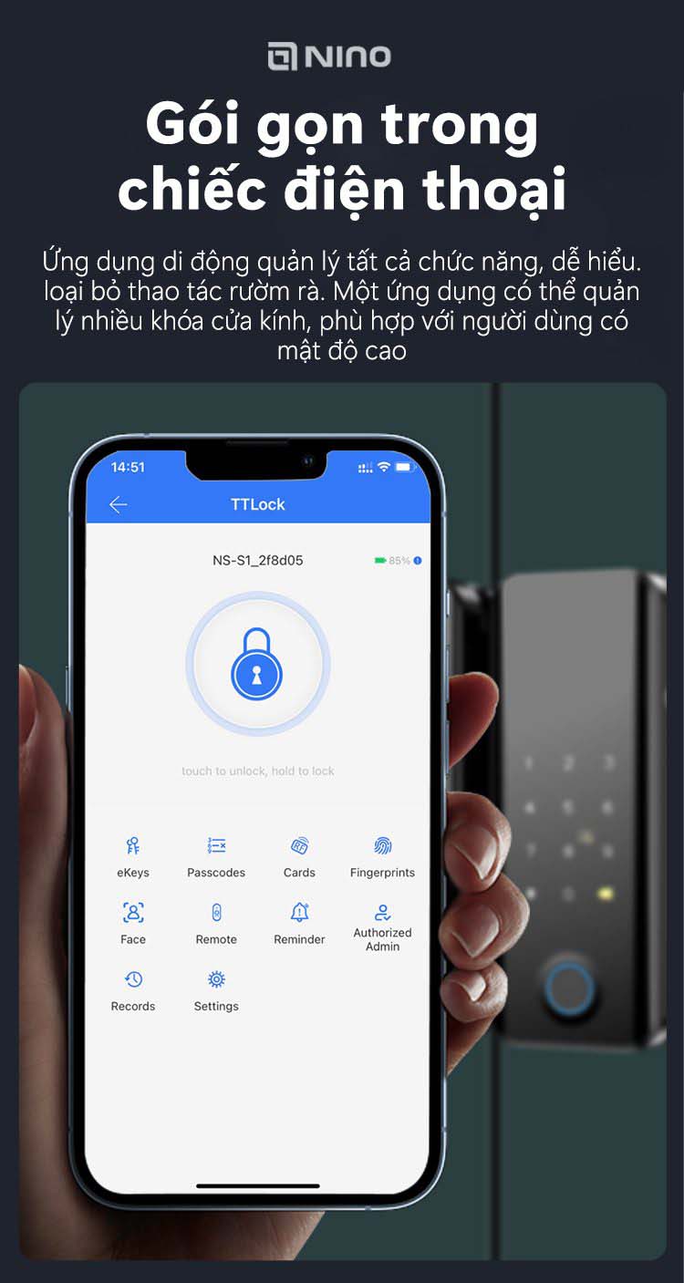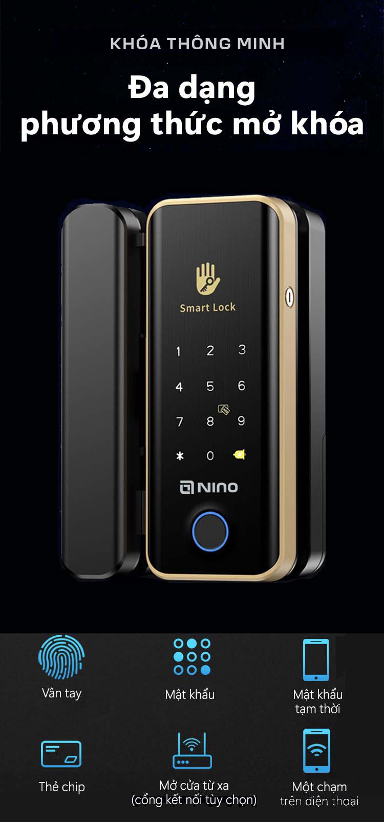 – Mở khóa: Smartphone, vân tay, mật khẩu, thẻ từ