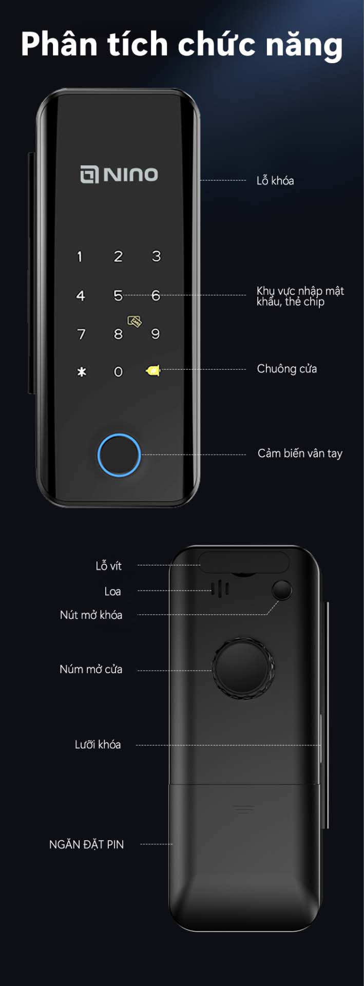 – An toàn: Tự động khóa cửa, báo động khi mở khóa sai 5 lần
