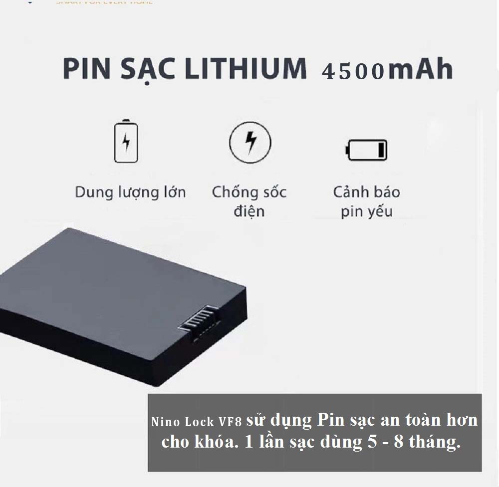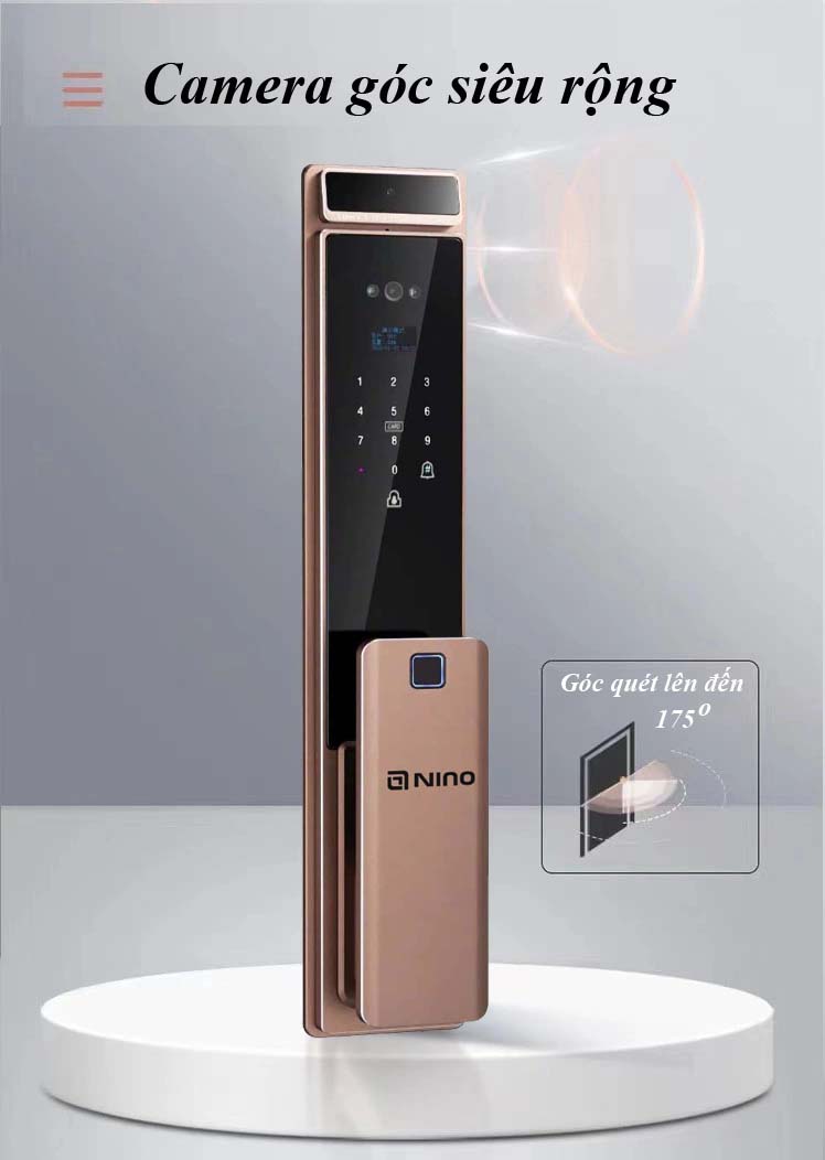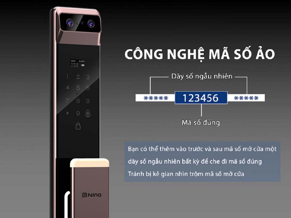 Khóa thông minh Nino Lock VF8: là một trong những mẫu khóa thuộc dòng sản phẩm cao cấp bán chạy nhất hiện nay. Khóa bảo mật bằng tĩnh mạch lòng bàn tay, nhận diện khuôn mặt, vân tay, thẻ từ, mã số, chìa cơ, app. Đặc biệt chức năng mở khóa bằng tĩnh mạch máu lòng bàn tay. Công nghệ Khóa cửa thông minh Nino Lock VF8 mật khẩu ảo và nhận diện vân tay dựa trên cả da và mạch máu cho độ chính xác hoàn hảo. Sản xuất theo tiêu chuẩn châu âu và bán cho thị trường khó tính nên Nino Lock VF8 đem lại cho người dùng trải nghiệm ấn tượng, an toàn và đẳng cấp.