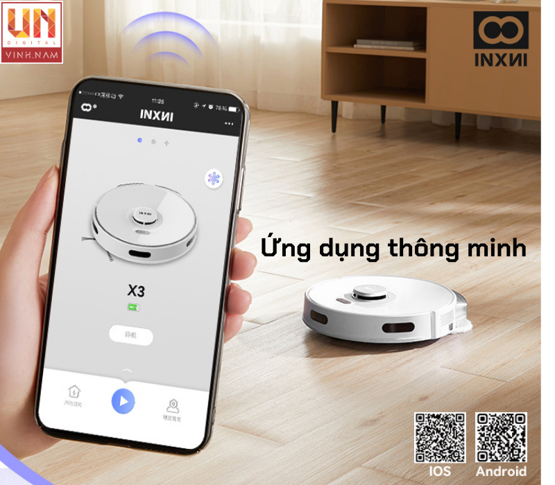 INXNI X3 phiên bản Quốc tế kết nối app trên hệ điều hành Androin và IOS giúp người dùng dễ dàng điều chỉnh các tính năng thônng minh như: Thiết lập tường ảo, tăng mực nước, tăng lực hút, hay hẹn giờ làm việc, điều khiển từ xa.....